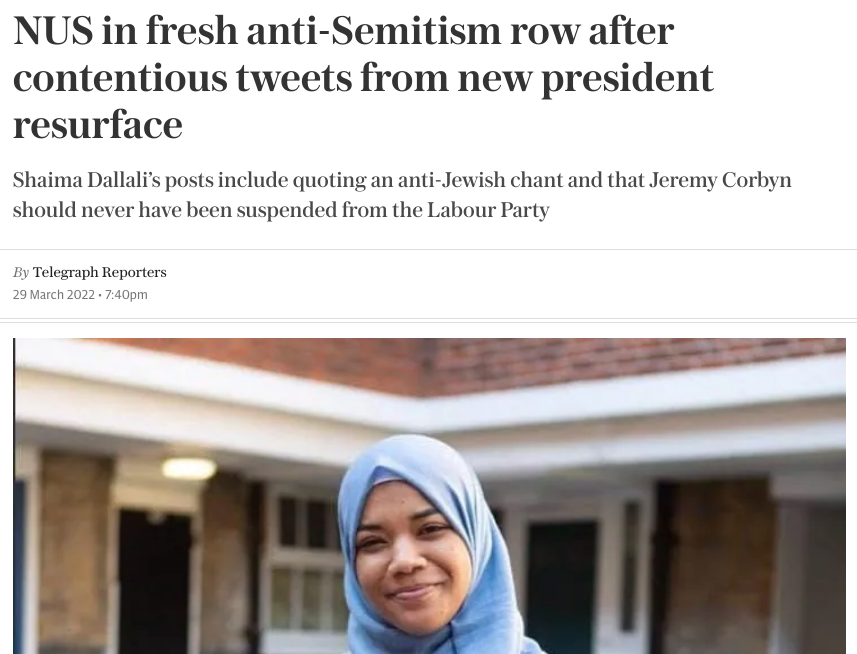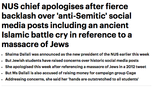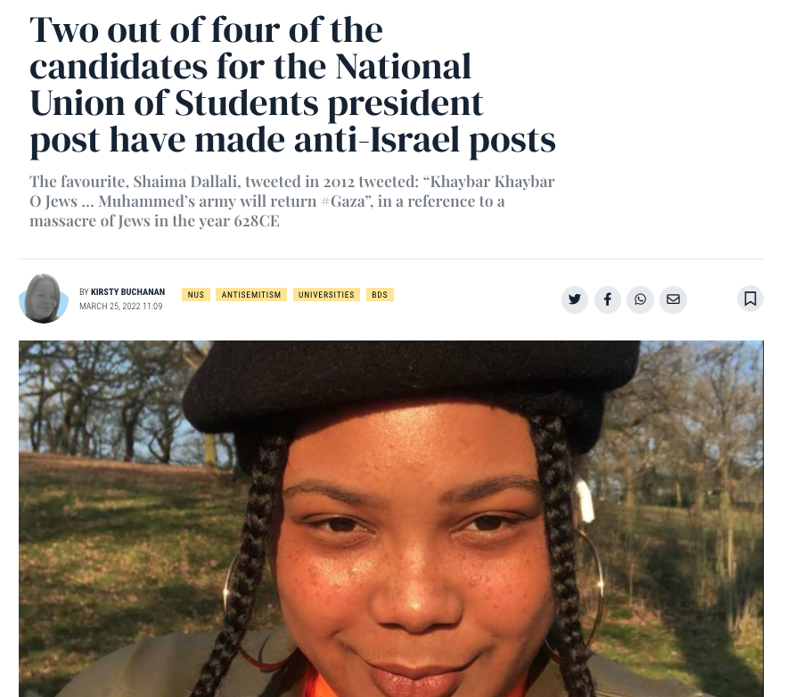 LAAS research was used by the national media, after we discovered troubling posts by Labour member and new NUS president Shaima Dallali. It was featured in The Telegraph, Mail, Times, Daily News UK and Jewish Chronicle