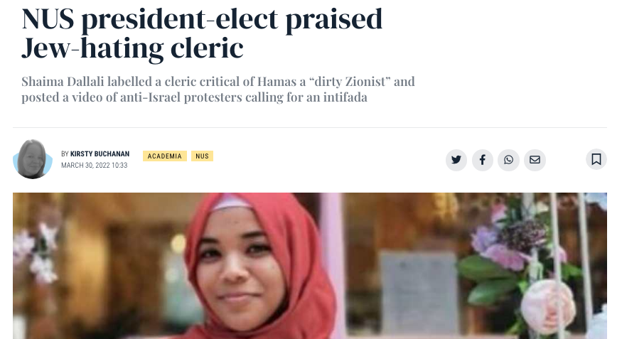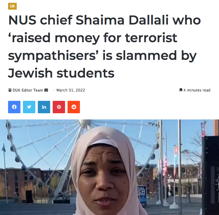 NUS chief Shaima Dallali who ‘raised money for terrorist sympathisers’ is slammed by Jewish students